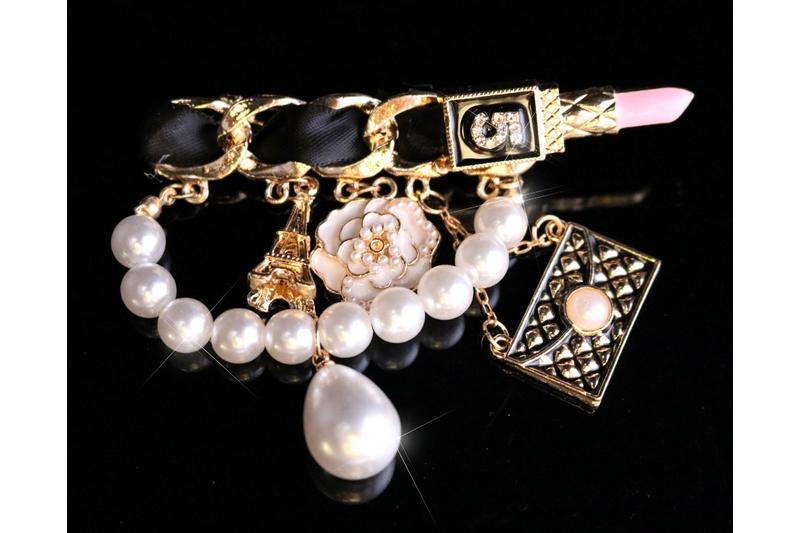A beautiful Chanel-style brooch-with fine details that make it special. It looks very feminine, glamorous and modern at the same time. Depending on the angle of view, it sometimes stylish and contemporary. Perfect for combining with a blazer, a an elegant fastening for a cardigan or as a highlight on a coat-a versatile accessory with statment character.